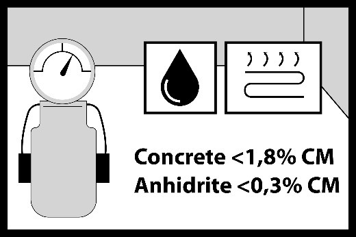 Влажность цементной стяжки должна составлять максимум 1,8%, а ангидритовой — 0,3%. Измерения следует проводить карбидным методом (так называемый CM).