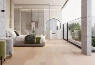 Дубовый пол в тёплом оттенке античного коричневого сочетает классический стиль и долговечность. Щётчатые доски подчёркивают естественный рисунок годичных колец и благородную структуру древесины.